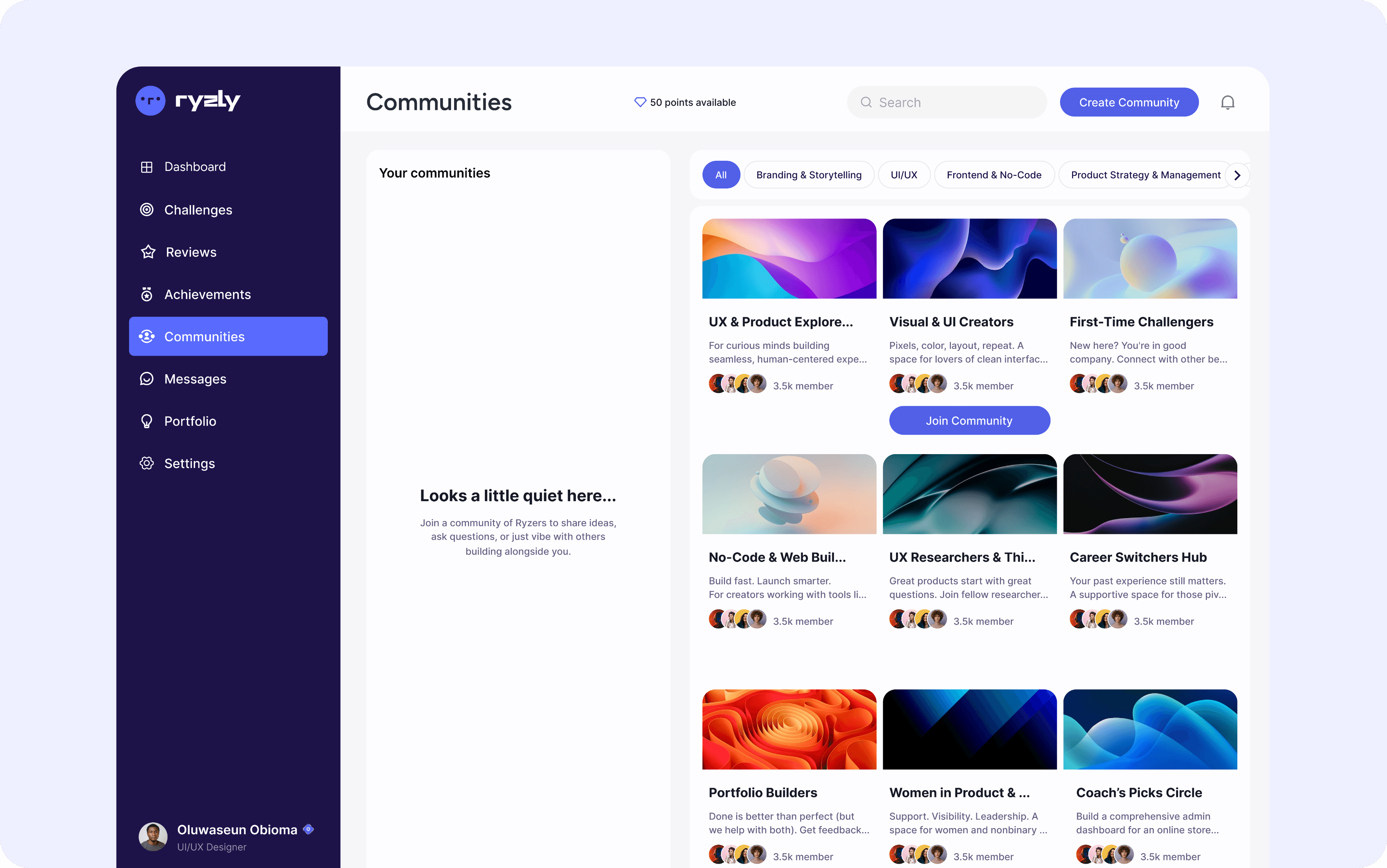 Whether you’re a designer, developer, marketer, or product thinker, Ryzly gives you a space to learn by doing through interactive challenges, mentorship, and community engagement. Participants grow their skills, earn rewards, and build a portfolio that stands out to top companies.